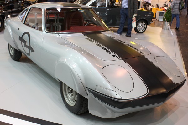 Opel wollte auf der Techno Classica 2011 zeigen, wie innovativ und zukunftorientiert Opel schon damals war und brachte den Elektro GT mit auf den Stand:
